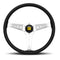 The MOMO Ultra steering wheel features cut-out spokes available in either black, blue or red with a sticker-bomb effect of the MOMO logo and an embossed yellow MOMO logo with a contrasting MOMO Italy horn button in black.