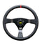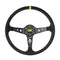 - The flat 3 spoke, 350mm design is trimmed in Black suede.